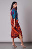 Dual scratch and stripe print hand micro pleated sari dress with adjustable length