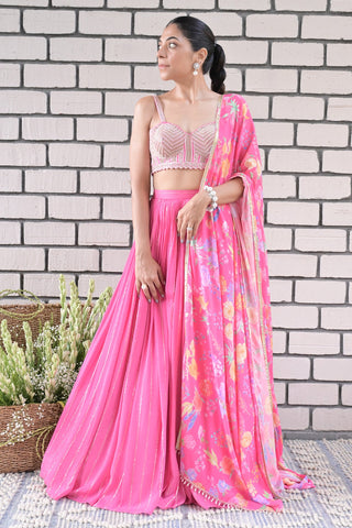 Georgette Skirt With Glass Bead And Pearl Embroidered Blouse And Floral Dupatta