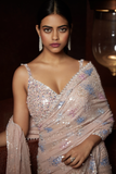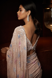 Seema Gujral : This georgette saree features all over metallic sequin clusters and is paired with an all over sequins blouse.