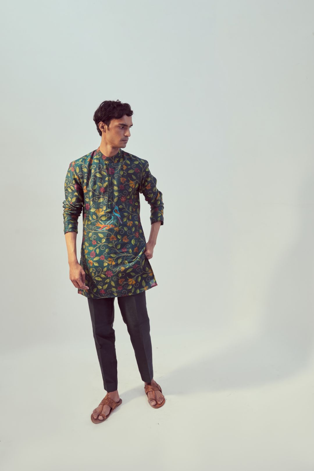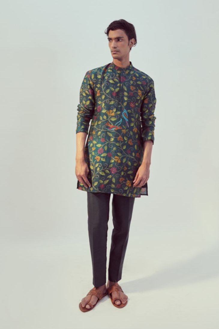 Teal kurta set for men
