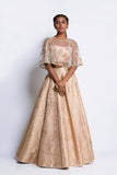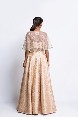 Designer Payal Singhal: Blush brocade bustier with net embroidered cape, and skirt.