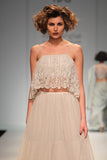 Designer Payal Singhal: Stone lace embroidered flouncy top with stone mukaish full net skirt.