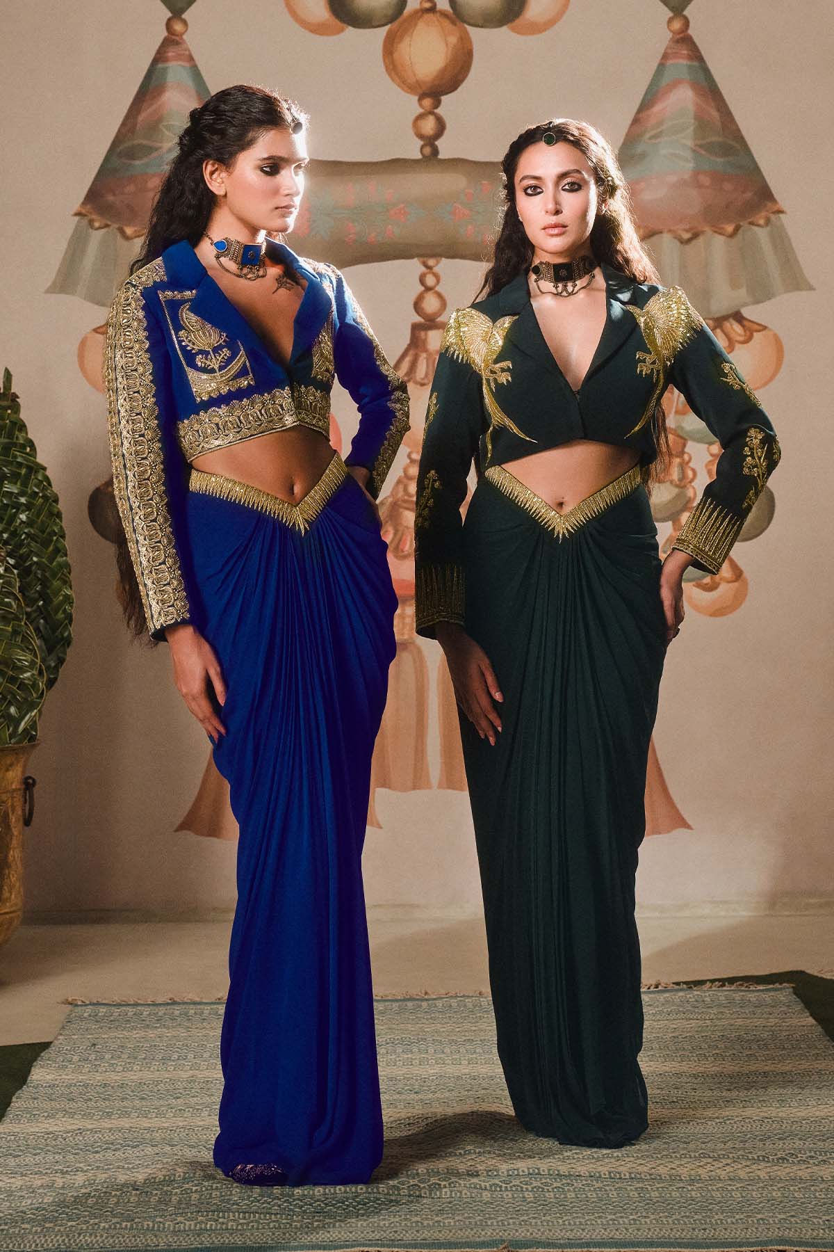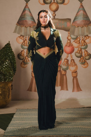 Fabric: Blazer- Heavy crepe | Boob Tube- Heavy crepe | Drape Skirt- Georgette