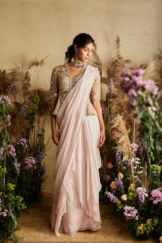 Peplum embroidered blouse and draped sari