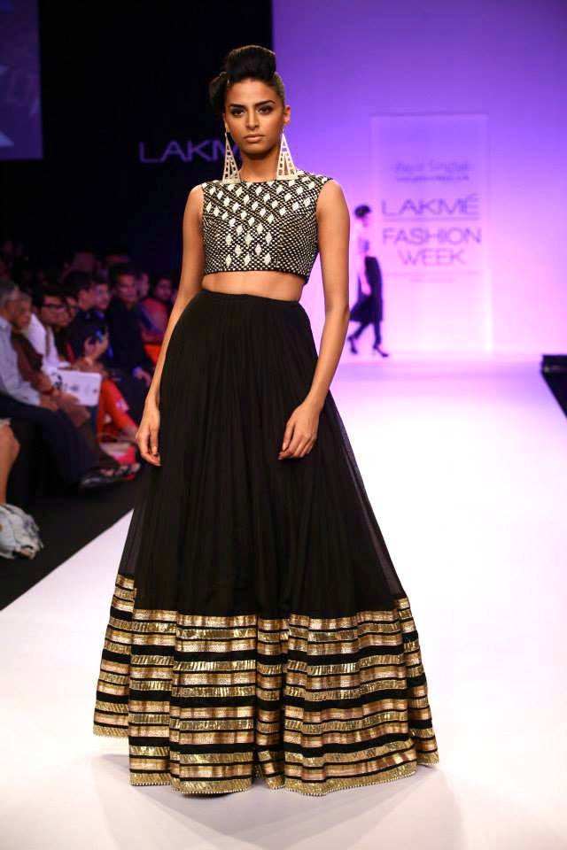 Designer Payal Singhal: Red embroidered choli blouse paired with mul silk lehenga and gota patti borders.