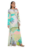 Tropical print crepe long beyza kaftan