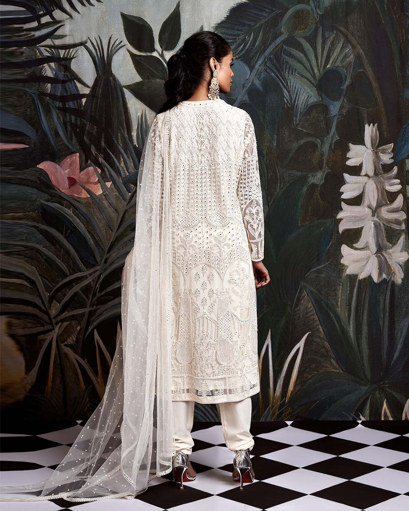 • IVORY SILK THREAD KURTA WITH MIRROR WORK DETAILING AND SEQUINS,