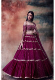 Intricately hand embroidered with sequin, cut dana , zari and dhaga off shoulder blouse with a georgette tier skirt and dupatta with mirror borders