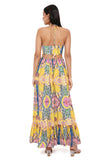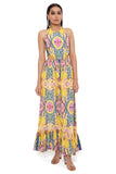 Yellow enchanted print crepe cut-out dress