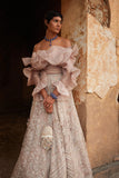 Champagne Organza Ruffled Top With Net Embroidered Lehenga
