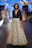 Navy silk top with stone organza tulip garden embroidered lehenga skirt